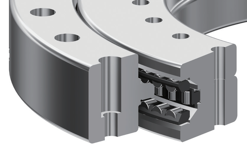采用軸向2列,徑向1列的滾柱排列構造,具有較高的力矩剛性,非常適合用于五軸機床的回轉工作臺。