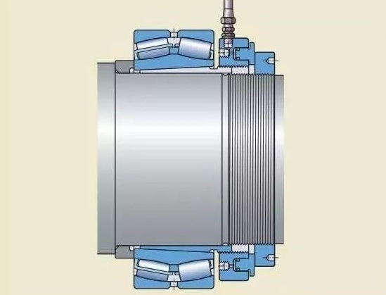 注油法的工作原理是:液壓油在高壓下通過油孔和油槽,注入軸承和軸徑之間的配合面,形成一層油膜。油膜將配合面分開,使得配合面之間的摩擦大幅減少。這種方法通常用于直接把軸承安裝在圓錐形軸徑上的情況。必須的油孔和油槽應(yīng)是整體軸設(shè)計的一部分。如果緊定套和退卸套,已加工有油孔油槽,這種方法也可用于將軸承安裝在緊定套或退卸套上。