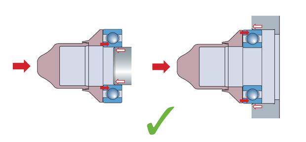 大部分軸承都采用壓入法進(jìn)行安裝。如果要將軸承的內(nèi)外圈同時裝到軸上和軸承座中,必須確保以相同的壓力同時作用在內(nèi)外圈上,且必須與安裝工具接觸面在同一平面上。